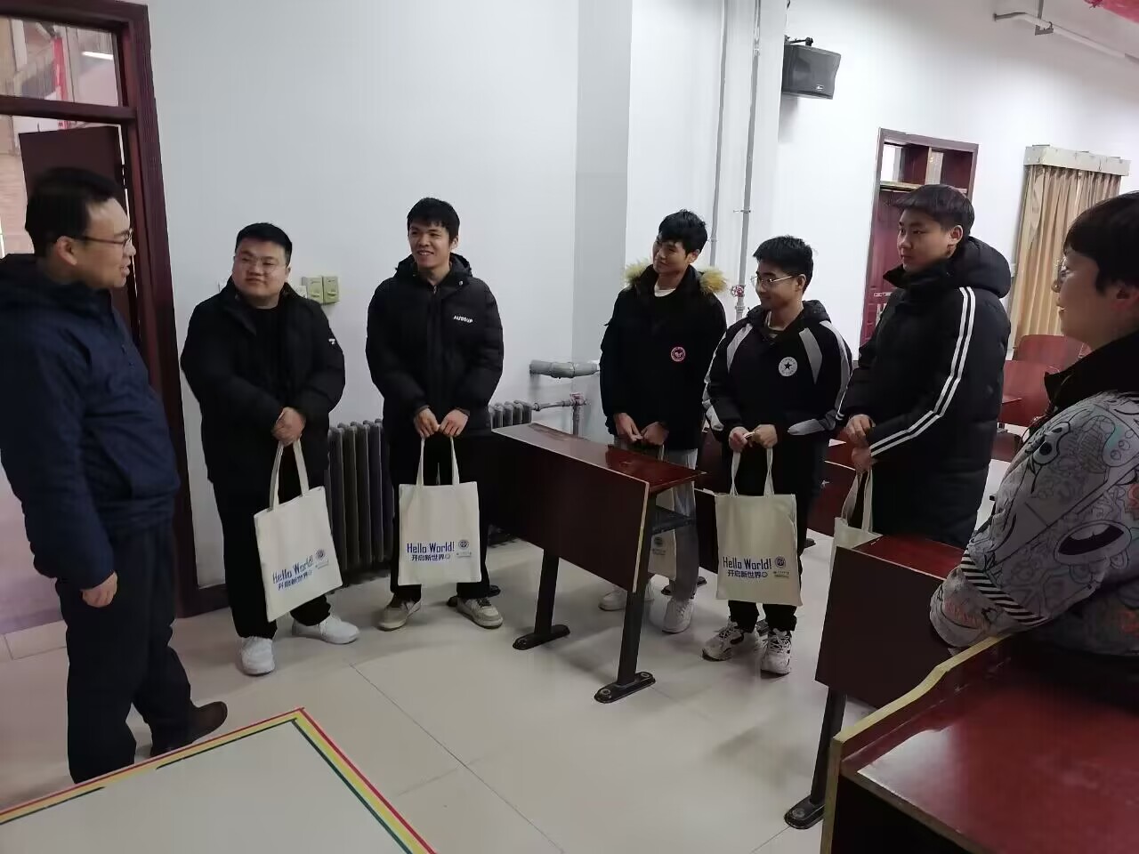 考研助力包由学院原创帆布手提袋、透明证件文具袋和暖宝宝套装组成,其中原创帆布手提袋由计算机学科元素“Hello World”和院名院徽构成,体现学院文化标识,透明证件文件袋为考生考试所需,暖宝宝是针对前期考研学子调研反映复习考试期间天气寒冷问题的应对措施。为不打扰考研学生复习节奏,助力包发放采取班级集体领取和宿舍、教室发放等多种方式,确保全覆盖,同时也适当扩大到部分家庭困难学生。发放过程中,老师们也全面了解了考研学生的备考情况和所想所需,解答处理了一些实际的学习生活问题。